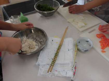 社会科で戦争中の暮らしについて学び、その当時のすいとんを作ってみました。