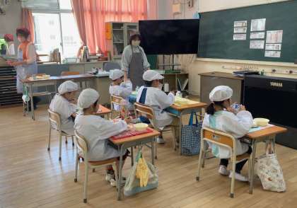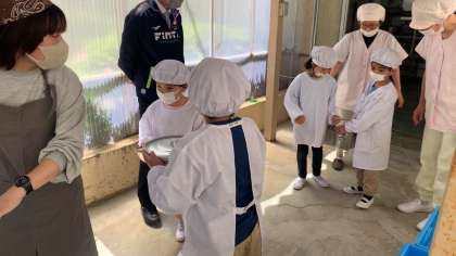 今日は給食参観がありました。保護者の方に準備から喫食の様子、片付けまで見ていただきました。