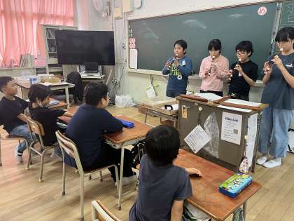 3年生でリコーダーの学習が始まったので、6年生がお手本として「いつもなんどでも」と「ひまわりの約束」を演奏しました。「知ってる!この曲!」と楽しみながら聞いてくれました。