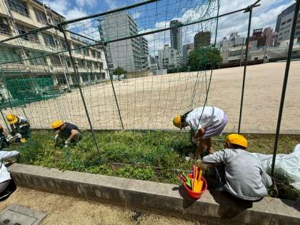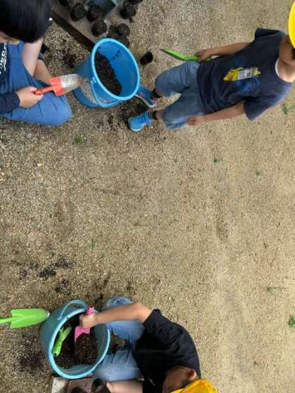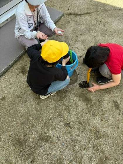 しっかりと種に土を被せ、水をたっぷりあげました。水やりの後は、花壇へ植え替えを行う際の準備として、草抜きも頑張りました。