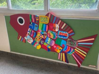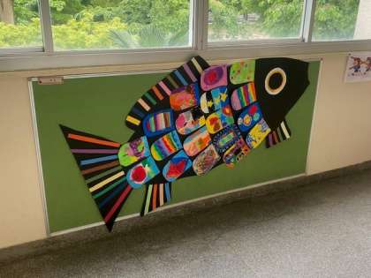 1,2年生の教室前に、大きなこいのぼりが泳いでいます!