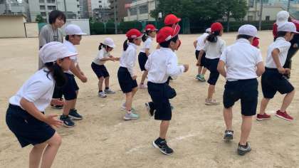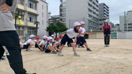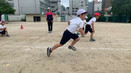 今日は速く走るコツを先生に教えてもらってみんな一生懸命チャレンジしていました。