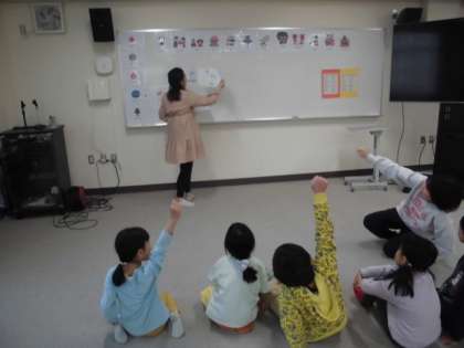 マリー先生の発音に合わせて、みんな上手に発表することができていました。