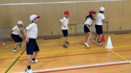 体力テストの計測が少しずつ行われています。今日は反復横跳び、長座体前屈といった種目を計測していました。来週は運動場にラインを引いて運動場の種目が行われる予定です。