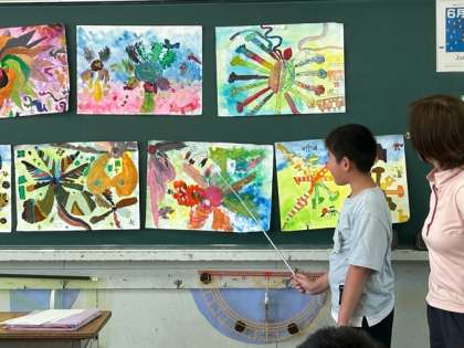 まぼろしの花が完成しました!みんなで、鑑賞会を行いました。どんな世界の花で、花にはどんなひみつがあるのか、想像を膨らませながらお話をしてくれました。お菓子の世界、宇宙の世界、、話をしていくうちに友達の描いた花の世界と繋がりがでてきたり、、、とても楽しい鑑賞会になりました。