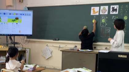 「ねことねっこ」という単元で促音「っ」を読んだり書いたりする学習です。子どもたちはよく手を挙げて発言していました。