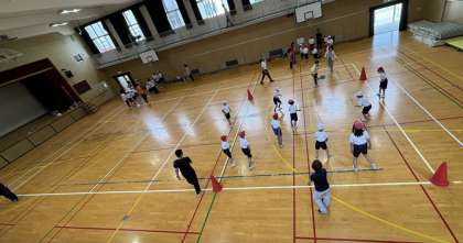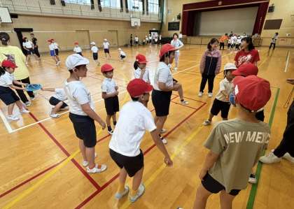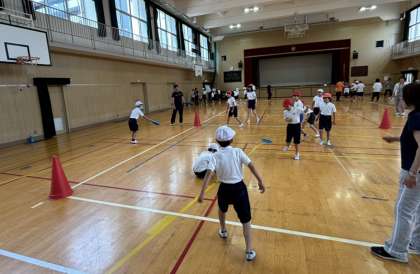 高学年が低学年に優しくわなげのこつを教えてあげたり、フリスビーを渡してあげたりしている姿がとても微笑ましく見えました。
