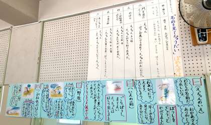 既習事項の振り返りや、自分たちの学習の成果を感じられるように教室掲示がされています。
