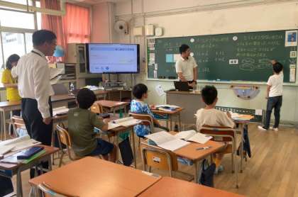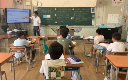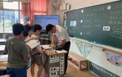 先週から教育実習生が来て、4年1組で実習をしています。今日は大学の先生も来て、実習生への研修授業がありました。