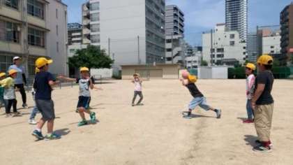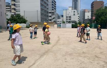 昼休みに外に出てみると、1、2、3年生合同でドッジボールをして遊んでいました。はじめは1、2年生が一緒にドッジボールをしようと言うていたそうですが、外に出れば3年生も一緒にしようとなったとのことです。あっという間に3学年合同ドッジボール。みんな仲良くとても楽しそうに遊んでいました。