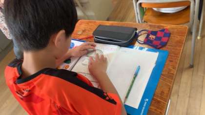 「合同な図形」の学習に入りました。今日は合同な図形とはなにかを学びます。そのために辺や角の大きさをみんなはかっていました。