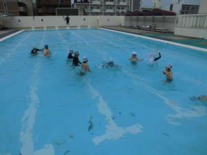 本日はくもりで、梅雨らしいじめじめとした天候だったため、水の中の子どもたちはとても気持ちよさそうにしていました。