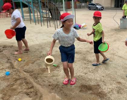 裸足になって素足で感じる土の触感を楽しんでいる子もいました。