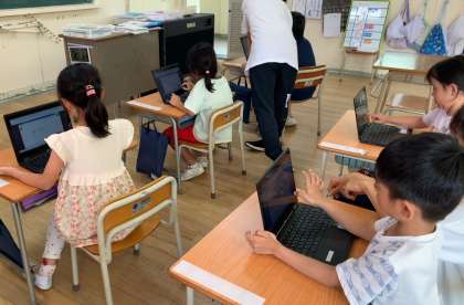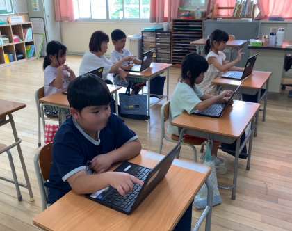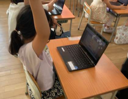 パソコンを使ってたし算、ひき算の練習問題にチャレンジしていました。満点をとって「やったー!」と喜びながら、何度も練習をしていました。