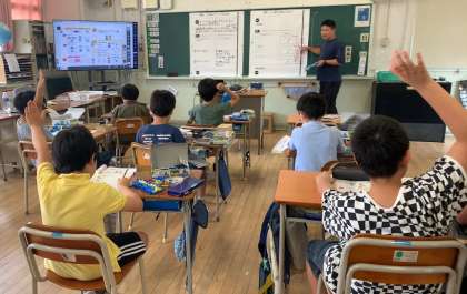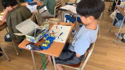 電流の大きさについて調べました。実験キットを使って電池の本数を変えて、直列・並列のつなぎ方を変えて調べました。みんな実験を通して答えまで導くことができていました。