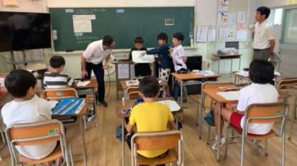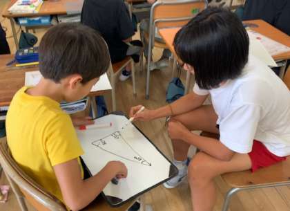 本日も教育委員会よりアドバイザーの先生に来ていただき、研修授業を行いました。今日は合同な図形の書き方について考えを出し合いました。子どもたちはこれまで習った知識を生かして、良いつぶやきや考えを出しながら頑張っていました。