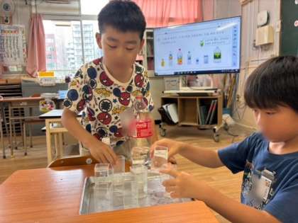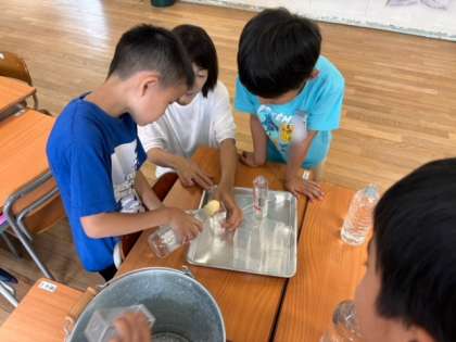 他のサイズの容器も予想してみんな意欲的に調べていました。
