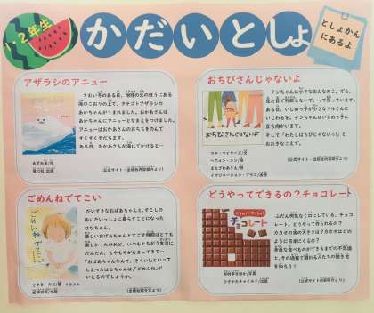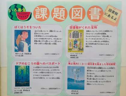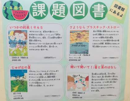 廊下には今年の読書感想文課題図書の案内を掲示しています。図書室で借りることができますのでご活用ください。