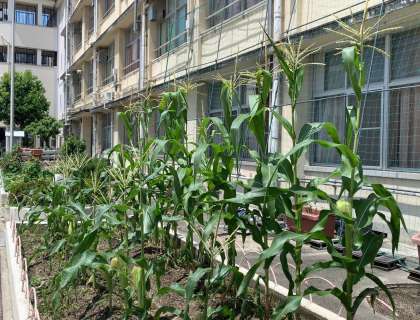 なかよし学級の学習園では、児童や先生らがお世話してきた野菜たちが実ってきました。子どもたちも成長を楽しみによく観察しています。