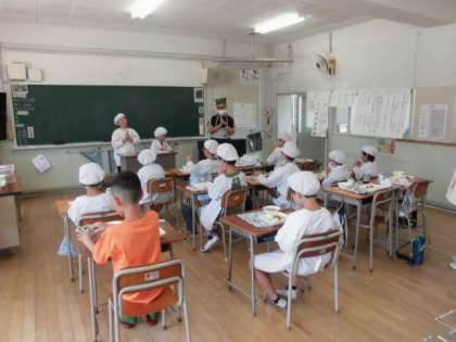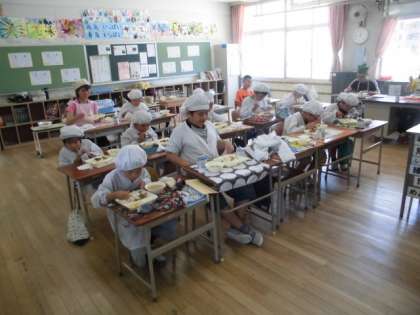「夏祭りのだんじりを盛り上げるために、給食で夏野菜をたくさん食べて体力をつけることができるように工夫しました。お祭り気分を味わえるように彩も考えました。」献立を考案した大阪市立の児童のコメントです。