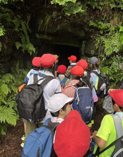 神鍋山登山です。途中「風穴」という洞窟を見学。中は8度とひんやり涼しいです。