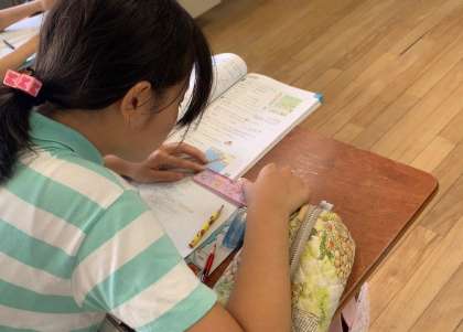 縮尺について学習していました。縮尺の表し方もいくつかあり、それを学習した上で、明石海峡大橋が何mあるのか、地図資料の縮尺をもとに計算していました。