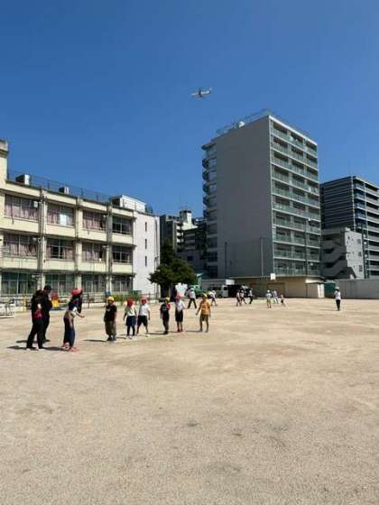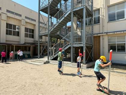 ドッジビーやミニサッカー、大縄、竹馬の4つに分かれて、暑さに負けず元気いっぱい過ごしました。