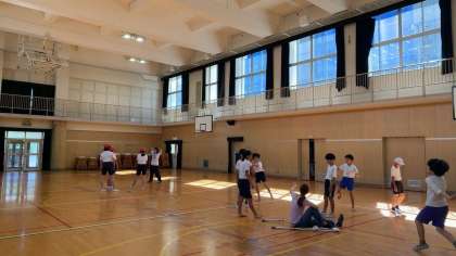 少し暑さが和らいできたでしょうか。今日は講堂で運動会の練習をしていました。