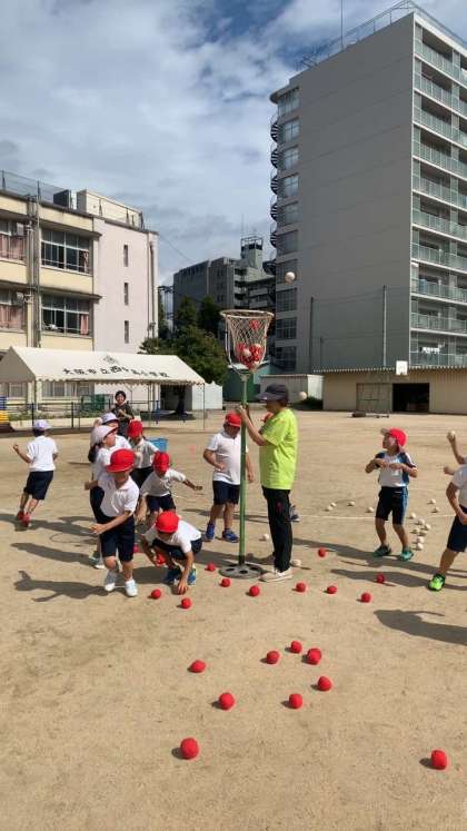 今日は玉入れの練習をしていました。みんなとても楽しんでいました。さぁどちらが勝ったのでしょう?