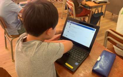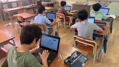 4年生の教室ではパソコンを使って、子ども一人ひとりが自分の課題に合わせて学習していました。