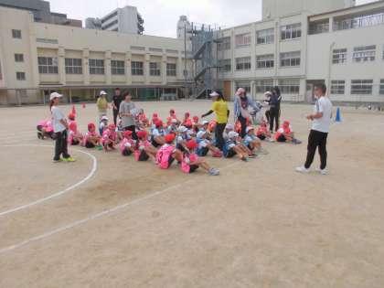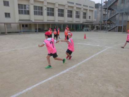 昨日の練習を生かして、より早く走れるように高学年を中心に話し合いをしたり、練習をしたりしました。