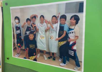 家庭科でエプロンを作りました。そのときの1枚。みんな揃っていい顔していて、素敵な1枚に出会えました。