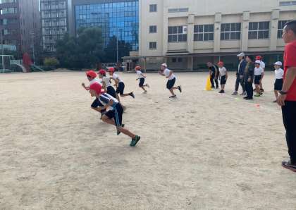 今日は「陸上」の荒川大輔選手、宮川洋也選手が来てくださり、速く走るコツを伝授してくださいました。