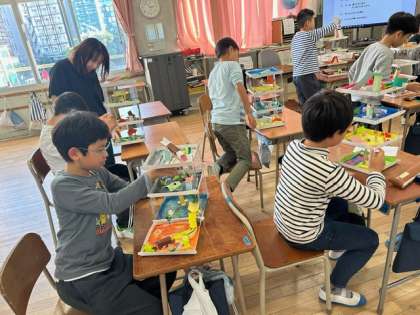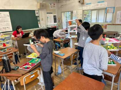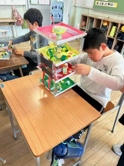 図工の時間に作った作品で、みんなで遊びました。