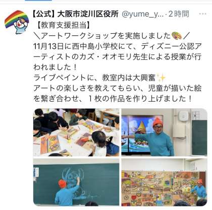 先日の全校ワークショップの取り組みが淀川区役所の公式Xに取り上げられました。