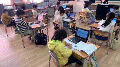 パソコンを使って、一人ひとりまとめていました。発表するための発表用原稿も作っていました。