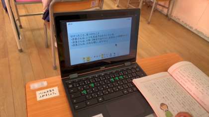 「町で見つけたことを話そう」という学習で、町たんけんに行ったことをまとめています。