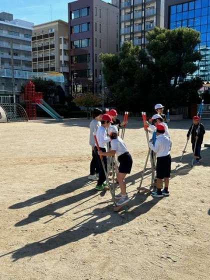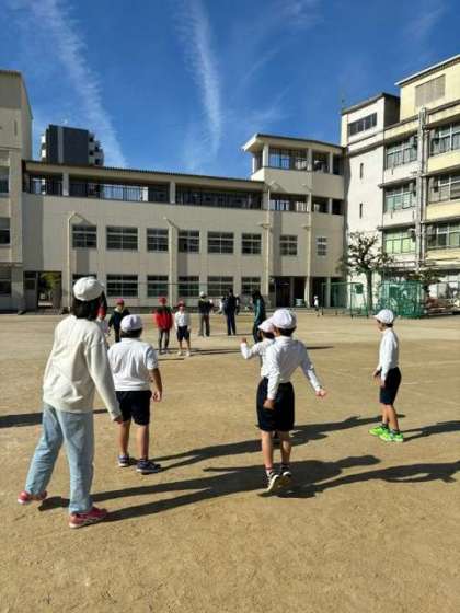 たてわり班で、全校児童が一斉遊びをします。先月雨でできなかった分、今日は快晴に恵まれ楽しく遊ぶことができました。