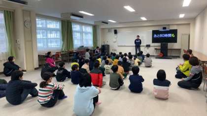 何かと子どもも思っていると冬休みまでの日数です。そして学校にいる時間はざっと「80時間」。この時間をどのように過ごすのか、時間の大切さについて子どもたちに話されました。