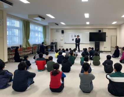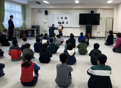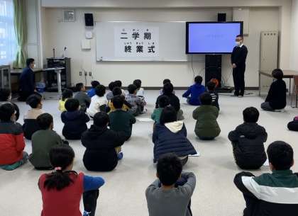 また生活指導の先生から「いかのおすし」という防犯標語のお話がありました。具体的でわかりやすく、子どもたちもしっかりと聞いていました。ぜひ今日の話を守って、元気に新年、そして3学期を迎えてほしいと思います。