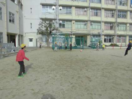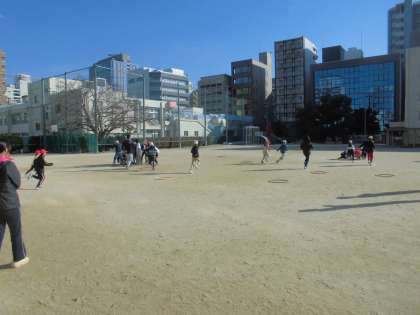 休み時間には寒い中も運動場で元気に遊ぶ様子が見られました。