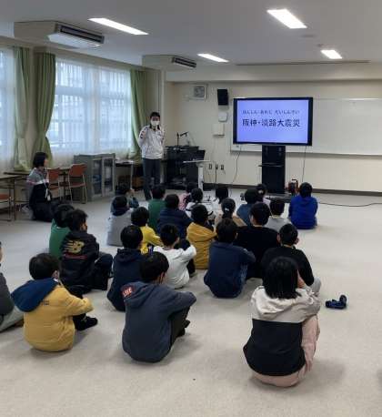 本日児童朝会がありました。校長先生から地震についてのお話がありました。今週金曜日1月17日は阪神淡路大震災が起こった日です。東日本大震災、能登半島地震も踏まえ、子どもたちに備えができているのか、ぜひお家で地震への備えについて話してみてくださいとお話されました。