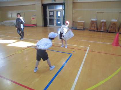 その後、「新聞」や「動物」なりきる表現遊びをしました。
