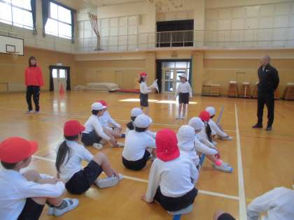 ダンスタイムでは、教頭先生の振り付けをマネしながら、音楽に合わせて体を動かしました。