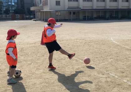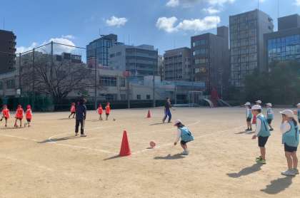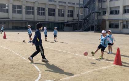 今日からボールけりゲームの学習がスタートしたようです。工夫された練習を通して楽しく活動している様子が見られました。