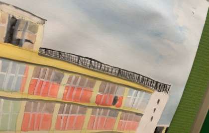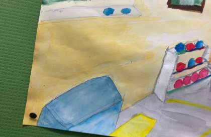 図画工作の作品で描きました。階段に掲示してあるのですが、6年生の子達の優しさがじんわりにじみ出ていて、温かみのある作品となっています。