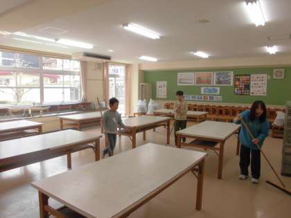 そのため、年に数回、「クリーン大作戦」として、日ごろ行き届かない箇所を、縦割り班に分かれて重点的に掃除をする活動を行っています。