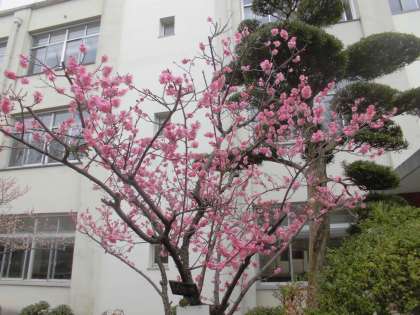 3月の学校だよりでも少し触れましたが、校庭の紅白の梅が開花しています。