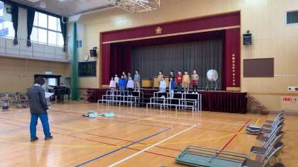 講堂での練習もはじまっています。みんな大きな声で頑張っています。