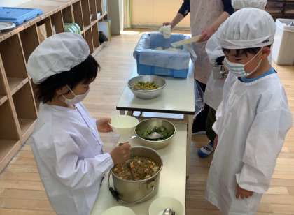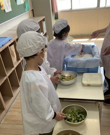 自分たちでできるように少しずつ練習しています。明日は給食参観です。その様子と、給食をしっかりと食べている様子を参観いただけると思います。ぜひお越しください。